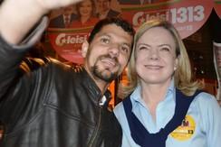 Uma foto do momento em que o homem faz a selfie com Hoffmann foi publicada no Facebook da senadora por sua assessoria, assim como outras imagens feitas no ato de campanha realizado na praça Rui Barbosa, no centro da capital paranaense.