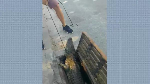moradores de Vargem Grande, na Zona Oeste do Rio de Janeiro encontraram um jacaré em um dos bueiros do bairro no último domingo (13). O Corpo de Bombeiros encontrou dificuldades para fazer o resgate do animal, que acabou levando mais de 72 horas.