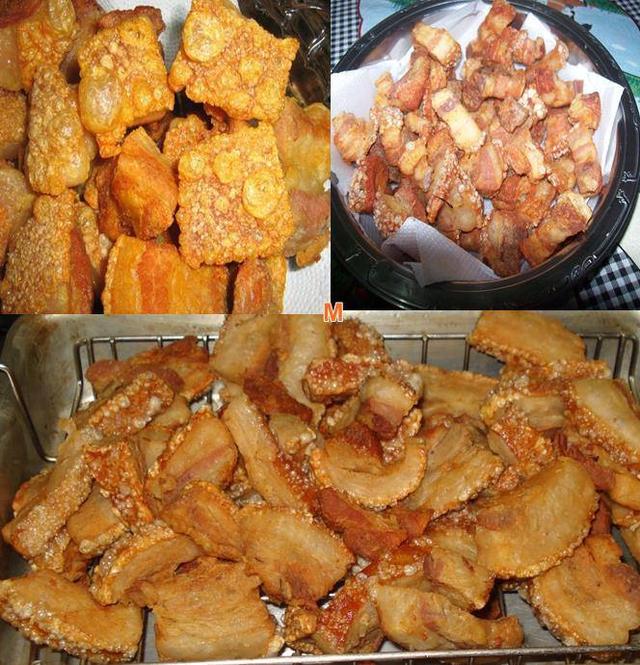 4. Coloque o óleo para aquecer e quando estiver quente, coloque as barrigas. Mexa de vez em quando e retire quando o torresmo estiver sequinho.