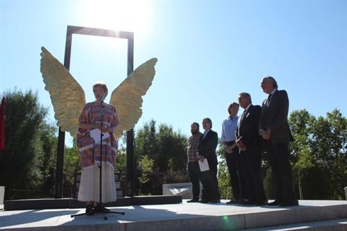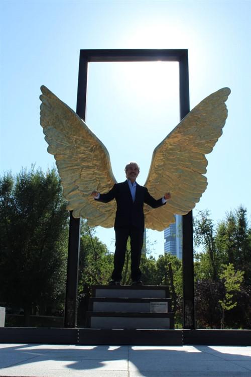 El artista mexicano ha indicado en el acto de inauguración de su obra que se trata de unas alas migrantes. "Como creador de ellas, reconozco que no están completas: esta escultura se concluye cuando la gente la porta, se fotografía e interactúa con ella. Al igual que las ciudades, que cambian y se reconfiguran con el intercambio cultural, estas alas se transforman en cada lugar al que llegan. Más allá del bronce, traen historias, pensamientos y sueños", ha dicho.