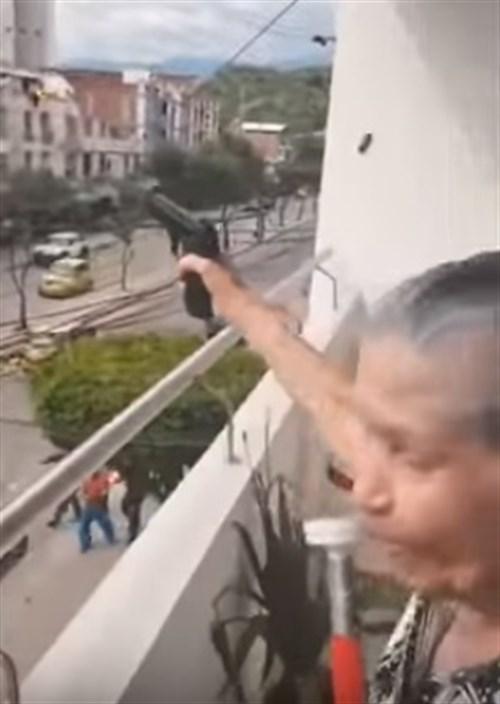 Una mujer colombiana de 84 años disparó una arma al aire desde un balcón durante uno de los partidos de la selección de Colombia en el Mundial de Rusia 2018. En un vídeo publicado en las redes se puede observar como la anciana es alentada por otra persona para que dispare.