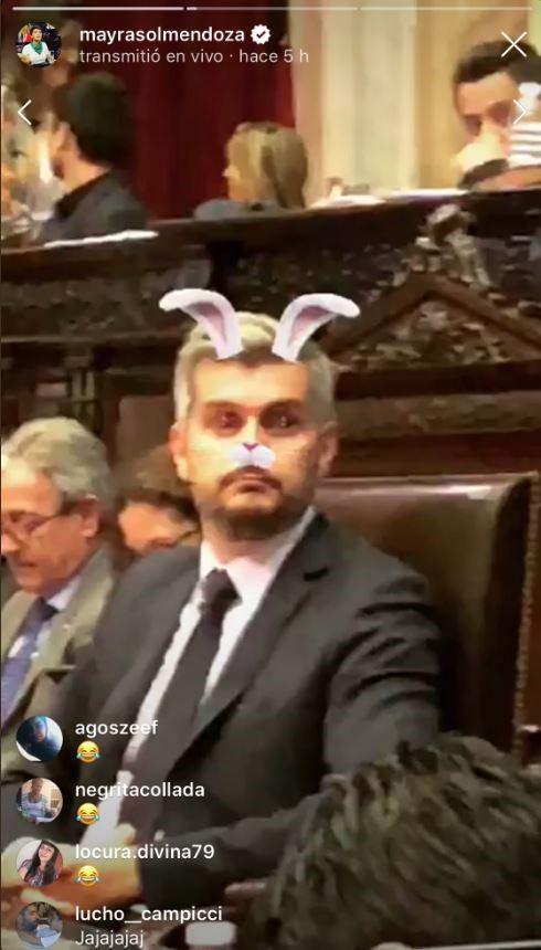 La diputada argentina del partido Frente para la Victoria (FPV) Mayra Mendoza ha aprovechado la última sesión de la Cámara Alta para burlarse del jefe de Gabinete del presidente Mauricio Macri, Marcos Peña, a través de una retransmisión en directo que compartió con sus seguidores de Instagram.