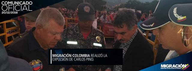 "La presencia en el territorio nacional del señor Carlos Manuel Pino García resulta negativa puesto que las actividades realizadas atentan contra la seguridad nacional, el orden público y la tranquilidad social en Colombia", ha indicado la oficina de migración de esa nación.