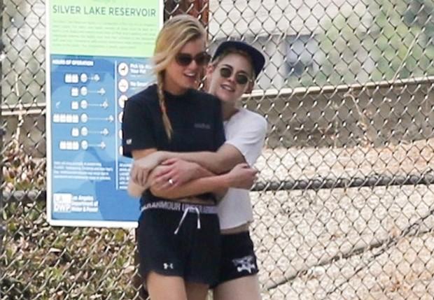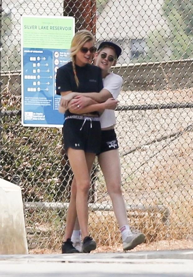 Kristen Stewart e Stella Maxwell curtiram a segunda-feira (20) juntinhas, fazendo um passeio por um bairro de Los Angeles. A dupla usava shorts e camisetinhas, além de óculos escuros e não economizou nos abraços e olhares apaixonados - apesar de juntas há quase dois anos, a atriz famosa pela franquia Crepúsculo e a angel da Victoria's Secret são discretas e dificilmente são flagradas em situações em que fazem mais do que daras mãos.