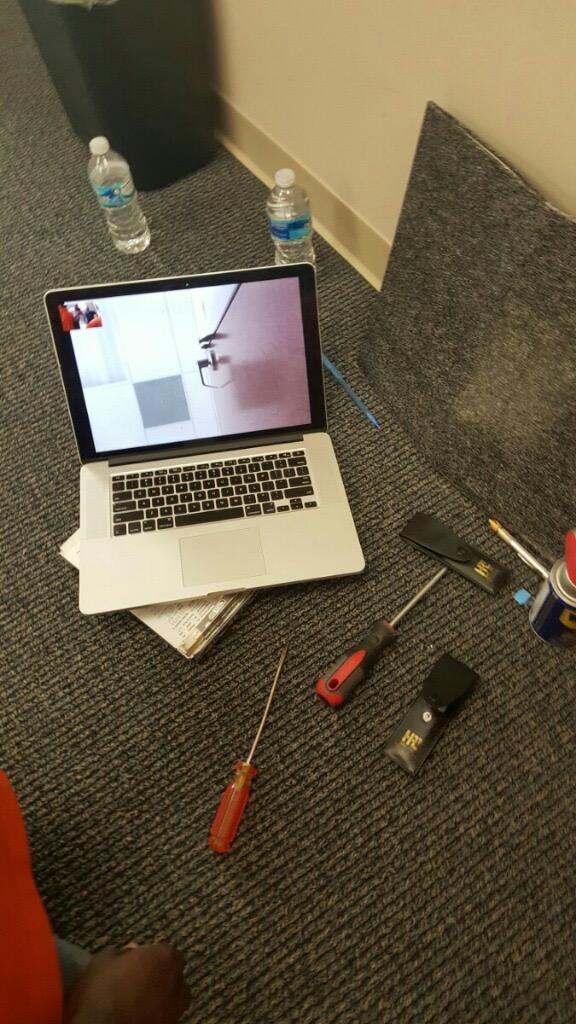 Using his MacBook, he was able to FaceTime himself and see exactly what the door handle was doing on the other side.