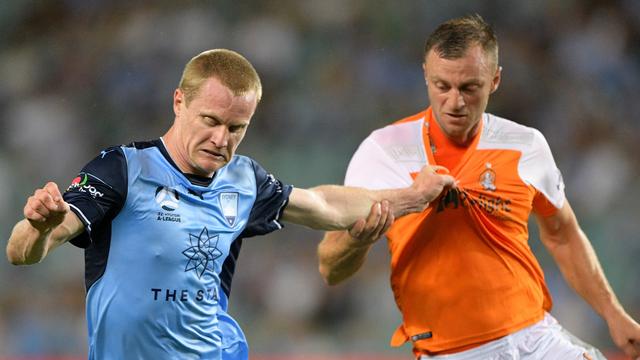 The Sky Blues looked set for a straightforward victory, but the match turned sour after 75 minutes when Roar centre-back Avraam Papadopoulos spat in the face of Sydney striker Matt Simon, who shoved the experienced Greek defender in retaliation.
