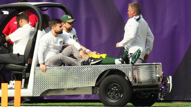 Rodgers was injured on Green Bay's second possession of last Sunday's 23-10 loss to the Vikings. He was hit by Vikings linebacker Anthony Barr and driven into the turf at U.S. Bank Stadium as he threw a pass to tight end Martellus Bennett.