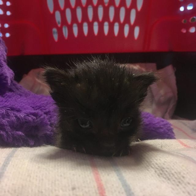 On March 24th, 2019, the three sisters took in a pair of foster kittens. The panther babies had been found with no mother in sight, and seemed to have some kind of skin condition that meant they couldn’t be with the other fosters. Sadly, on the first night, one of them crossed the Rainbow Bridge.