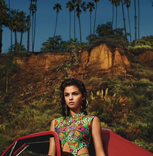 We're finishing the rundown with this notorious photoshoot from Vogue. Selena wore the front of American Vogue interestingly in March 2017. Standing up about her issues with uneasiness and stress, Selena chose it was best to expel herself from the spotlight, companions and even family to detox from the pressure. Turning out more grounded than any time in recent memory, Selena worked this flower child botanical jumpsuit with signature gold band studs. The shoot in the Malibu slopes included Selena driving a little red Corvette.