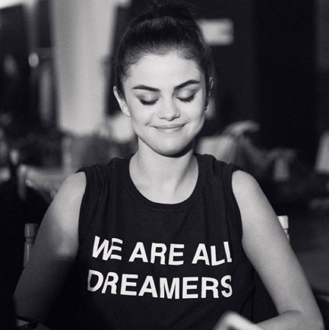 In the background of her Coach x Selena Collection shoot, Selena got political, wearing this "Conceded Action for Childhood Arrivals" (DACA) tee with the content understanding "We Are All Dreamers." Her shirt was certainly her ensuring the entire world knew where she caught everyone's eye.
