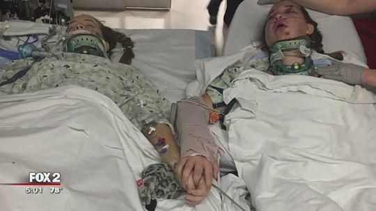 A 12-year-old girl was pictured grasping her older sister’s hand in a tragic final photograph hours before she died. Both girls were seriously injured when they lost control of an ATV quad bike and crashed into a tree. Riley Robinson was taken off life support after it became clear she wouldn’t recover, while her sister Peyton, 14, remains in a critical condition.