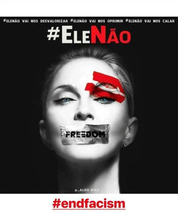 Madonna é mais uma estrela internacional a anunciar apoio à campanha #EleNão, criada por mulheres brasileiras nas redes sociais em repúdio ao autoritarismo e ao preconceito defendidos pelo candidato à Presidência Jair Bolsonaro (PSL).