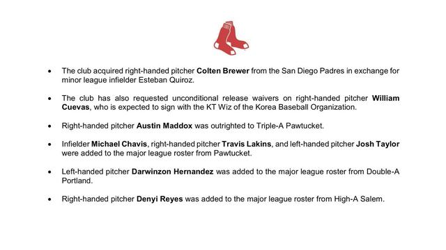 The #RedSox today made the following roster moves. The club's 40-man roster is now at 39: