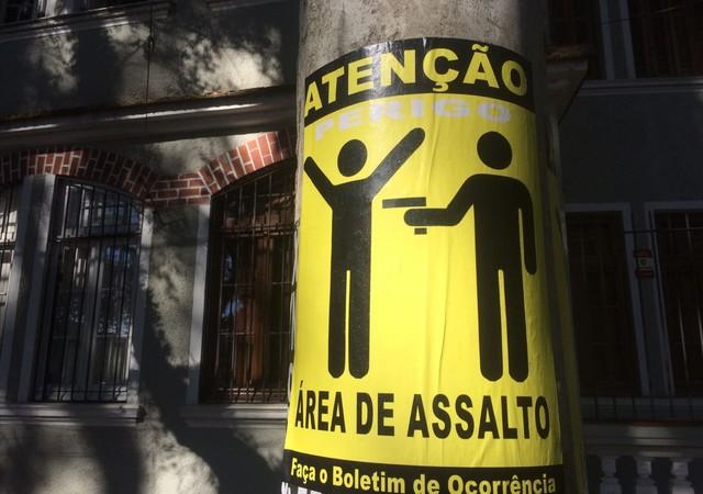 Eles resolveram destacar o fato e fincaram em postes cartazes com o alerta: "área de assalto".