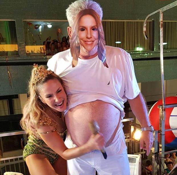 Na imagem, o pai de Claudia, Claudio Inácio, está usando uma máscara de Ivete e está com a camisa levantada, exibindo a barriga da "gravidez". A foto foi publicada nas redes sociais pelo irmão de Claudinha.