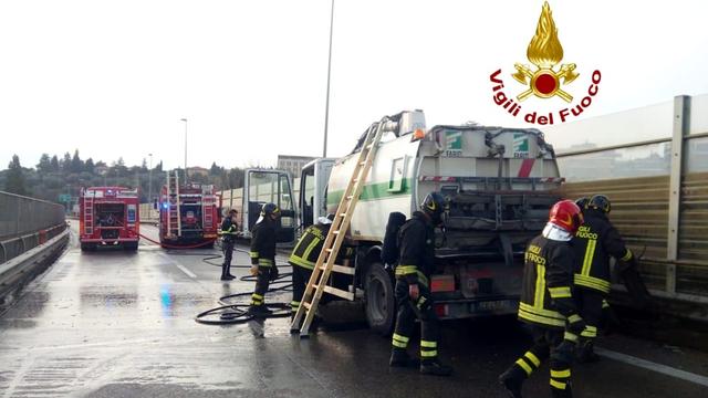 Sul posto stanno intervenendo Vigili del fuoco con due squadre della centrale e un'altra squadra con autogru per la rimozione del mezzo. Impeganta anche una pattuglia della Polizia stradale per gestire il traffico condizionato da code e rallentamenti.