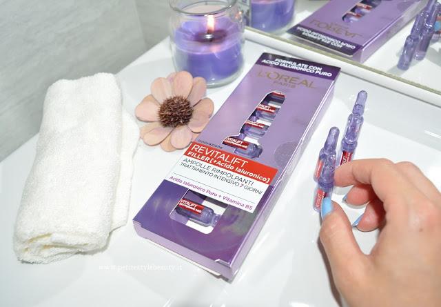 L'Oreal Paris ha creato un trattamento intensivo viso della durata di 7 giorni, col nome di Ampolle Rimpolpanti Revitalift Filler, con formula innovativa contenente acido ialuronico puro e vitamina B5.