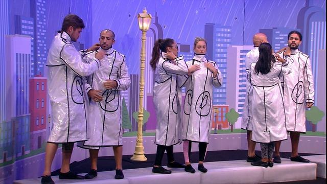 Breno começa a Prova do Líder Cantando na Chuva.