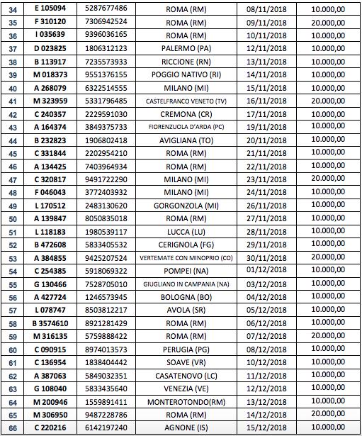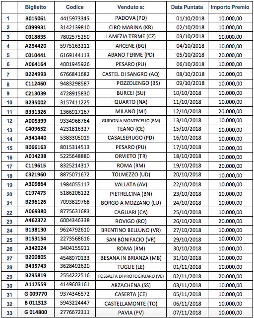 Ecco quindi l'elenco dei 66 vincitori di premi giornalieri che portano a casa chi 10mila e chi 20mila euro.
