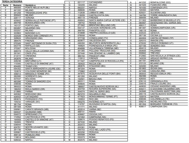 Ecco dunque i codici dei biglietti vincenti dei premi di terza categoria diffusi dall'agenzia dei Monopoli.