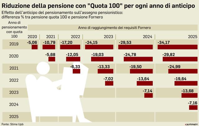 Quanto si riduce la pensione con quota 100
