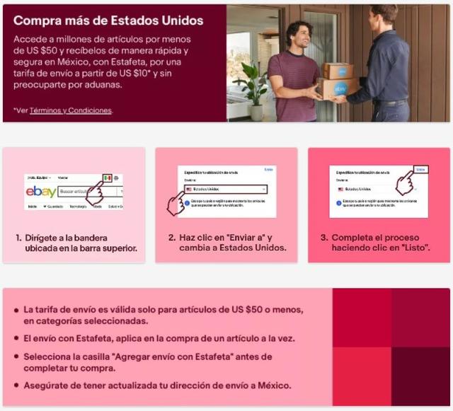 Ahora, ambas compañías lanzan un nuevo servicio llamado “Más desde Estados Unidos con Estafeta” con el único objetivo de ofrecer envíos directamente a México sin quedarse en una casilla en el país estadounidense. Es decir, comprar el producto, después eBay lo enviará directamente desde Estados Unidos hacia México.