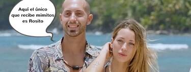 Pero el programa también ha tenido para momento bonito. Antes de las hogueras, cada uno recibió una carta que le había escrito su pareja antes de llegar a la isla. Aunque la de Pablo escrita por Mayka ha acabado... Cómo decirlo... Perjudicada. Hecha pedacitos, vamos. Como va a acabar el relleno de Rosito.
