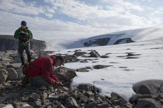Simon Pendleton, a Ph.D. student in geology at the University of Colorado Boulder and lead author on the study, says the results suggest these particular lifeforms, which were only recently made visible by melt, had been continuously covered since the last ice age. In other words, the research team was hiking around collecting specimens from a landscape that had been hidden from view for at least 40,000 years.