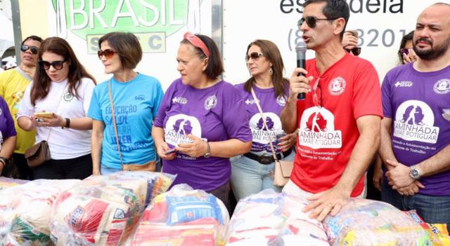 A governadora Fátima Bezerra realizou a entrega simbólica, em parceria com o Mesa Brasil do Sesc, de 3,5 toneladas de alimentos arrecadados na 6ª Caminhada da Mãe Potiguar. Cerca de 23 instituições carentes de Natal e região metropolitana serão beneficiadas com a ação.