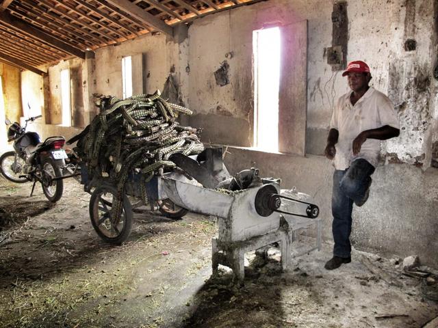 Em 2013, quando fui cumprir uma pauta para cobrir as consequências da seca no RN, o que encontrei no distrito Caatinga Grande, município de Jardim do Seridó, foram moradores desocupados debruçados em suas janelas ou sentados nas calçadas, para amenizar o forte calor. Pelas ruas de areia, carroças puxadas por bois transportavam xique-xique ou capim. Encontrei por lá também galpões escuros que, entre outras coisas, eram usados para queima do xique-xique, e fotografei, em um deles, um sertanejo moendo a planta, para dar ao gado de comer. Timidamente e com os olhos cheios de lágrimas, ele me disse que era a última alternativa, para não ver os animais morrerem de fome.