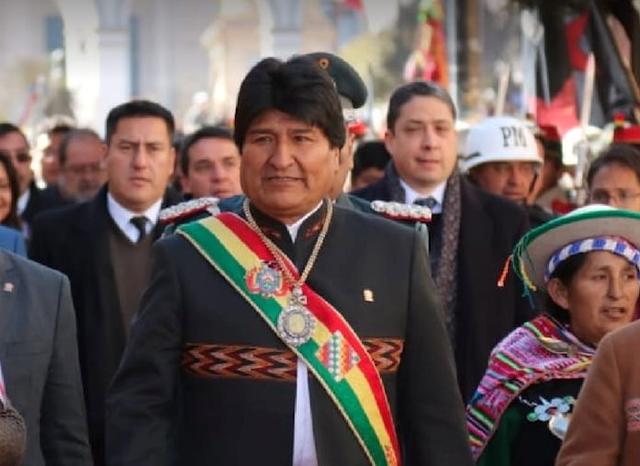O presidente Evo Morales chegou nesta manhã ao local das comemorações do Dia das Forças Armadas bolivianas na cidade de Cochabamba sem usar os símbolos.