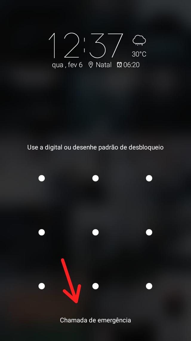 1 – Na tela de bloqueio do aparelho, selecione o menu de emergência