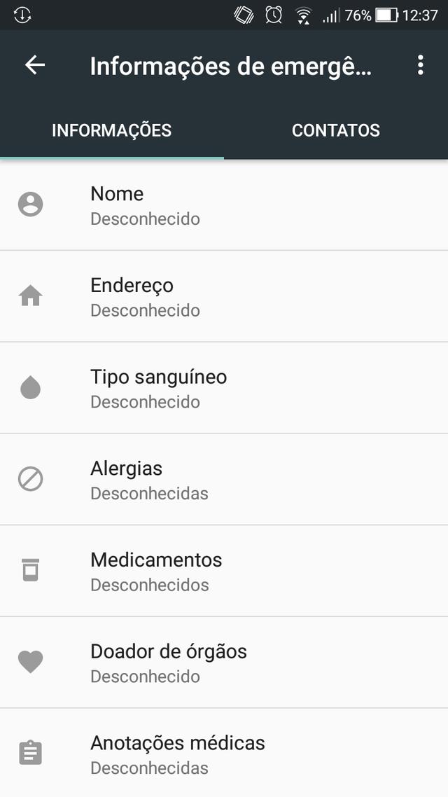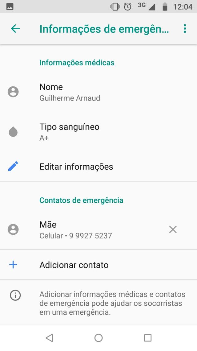 Acontece que, assim como os contatos de emergência, é possível salvar no aparelho dados como nome, endereço, tipo sanguíneo, alergias e demais problemas de saúde. Além disso, o usuário também pode informar se é doador de órgãos e acrescentar observações médicas relevantes para casos urgentes. A função pode ser acessada no teclado de discagem de emergência, sem precisar desbloquear o telefone.