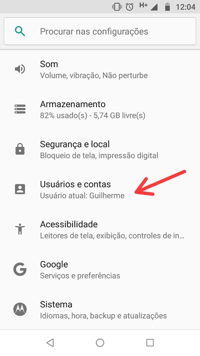 1 – Acesse o menu de Configurações e clique em “Usuários e Contas”