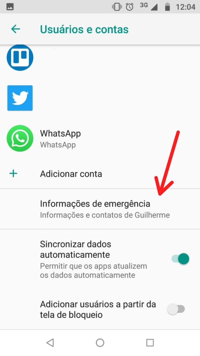 2 – Selecione “Informações de emergência” e preencha os dados