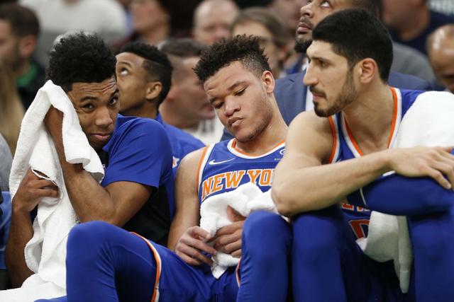 You know who led the Knicks in plus/minus tonight? Frank Ntilikina, who didn’t play. That’s right: every Knick to appear during Boston’s 128-100 slow burn blowout finished with a minus. The only Celtic with a minus rating was Aron Baynes, who had to exit after two minutes with a left ankle sprain and didn’t return.