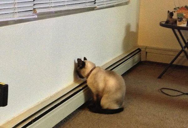 Many times our pets will be seen pressing their heads against hard surfaces and sometimes for no apparent reason so when this happens, take them to the vet because it head pressing is a health condition that indicates that there’s damage in the nervous system.