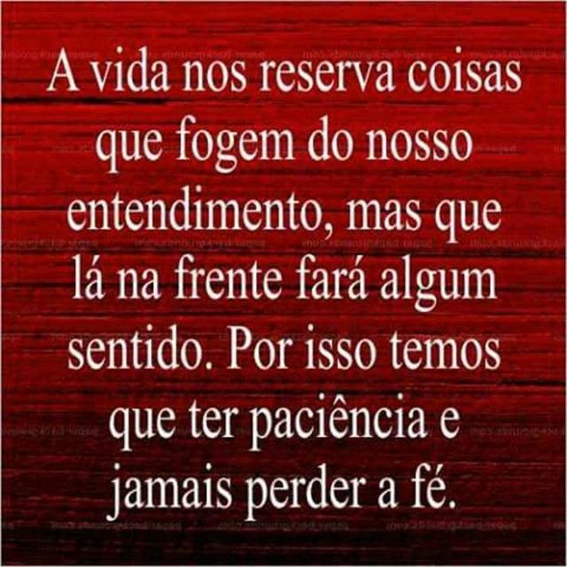 A Vida Nos Reserva Coisas Que Fogem Do Nosso Entendimento, Mas Que Lá Na Frente Fará Sentido. Por Isso Não Perca A Fé...