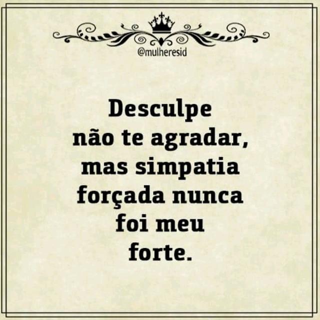 Desculpe não te agradar, mas simpatia forçada nunca foi meu forte!