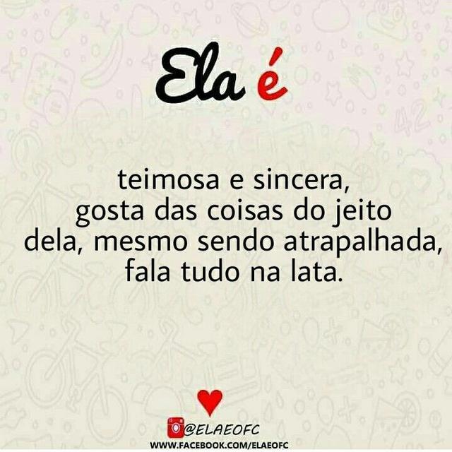 Ela é assim meio mandona, meio na defensiva. ela é menina pedindo colo e mulher Dona das suas atitudes!