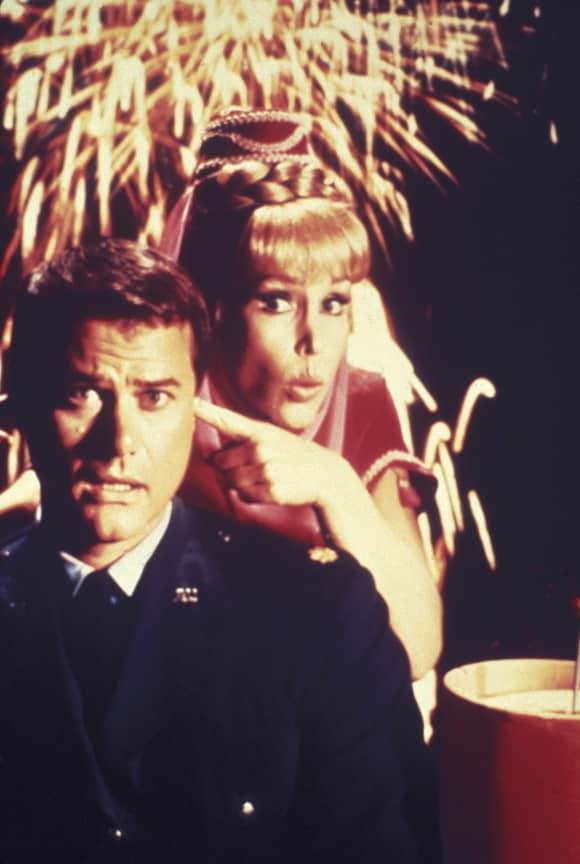 After a failed landing attempt, the astronaut "Major Anthony ´Tony´ Nelson" is stranded on a desert island where he finds a purple bottle. Following the now classic Hollywood cliché, "Nelson" rubs the bottle only to find that a genie, funnily named "Jeannie", lives inside. As thanks for freeing her from her cage, she is obliged to grant the major anything he wants which leads to a ton of magic-filled shenanigans. "Jeannie" quickly falls in love with "Nelson" and they even get married at the end of the show.