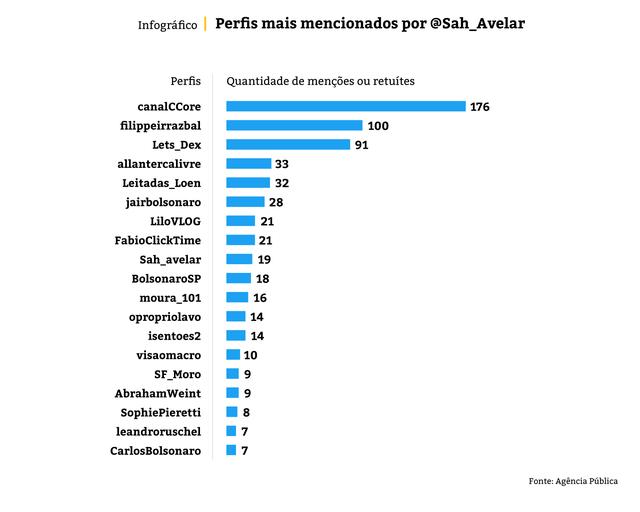 Dessa forma, ainda em agosto, a reportagem da Pública identificou o perfil como um robô destinado a levantar pautas a favor do governo e denunciou a conta ao Twitter, que afirmou que tomaria as providências. Apesar disso, @Sah_Avelar continuava ativa até o início de dezembro, quando foi suspensa pela plataforma.