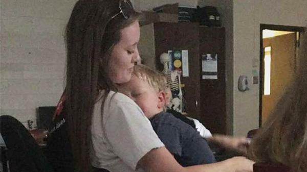 “Instead of missing class she actually took her three year old brother back to high school with her and let him sleep on her while she finished her last class of the day. I’m not sure on the legalities here or what kind of rules were broken but I also just don’t care. My sweet teenager helped her family out and returned to her other responsibility while snuggling her baby brother.”