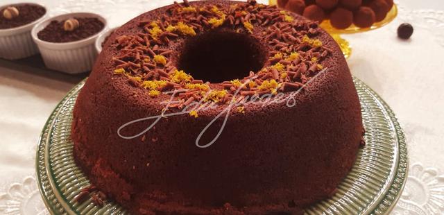 No liquidificador, bata os ovos, o açúcar, o óleo, o suco e as raspas de laranja. Passe para uma tigela e acrescente a farinha de trigo já misturada com o cacau em pó e o fermento. Misture bem até ficar homogêneo. Leve para assar em forma untada e enfarinhada por cerca de 30 minutos a 160ºC. Desenforme o bolo e molhe com suco de laranja ainda morno.