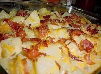 Add the potatoes to a saucepan. Add water to cover. Bring to a boil; cook about 10-12 minutes or until potatoes are almost tender; drain. Place drained potatoes into a greased 13×9 inch baking dish.