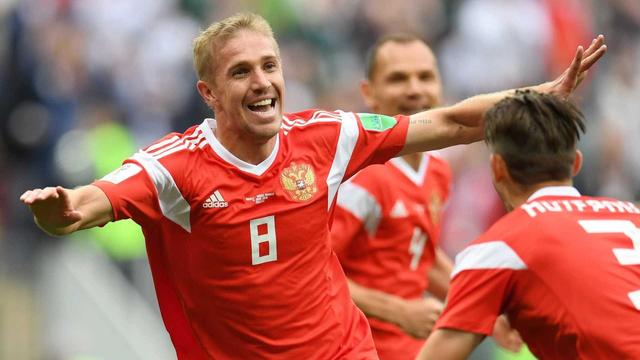 O meia Yuri Gazinsky, da Rússia, marcou o primeiro gol da Copa do Mundo de 2018, na partida entre a seleção anfitriã e a Arábia Saudita. O tento do jogador de 28 anos foi anotado aos 12 minutos do primeiro tempo, no Estádio Luzhniki, em Moscou.