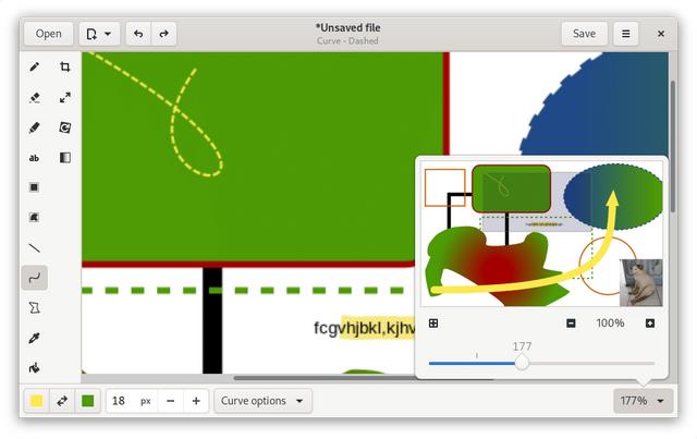 O Drawing é um editor de imagens básico e de código aberto para Linux. Você pode desenhar setas, linhas, formas geométricas, adicionar cores e outras coisas.