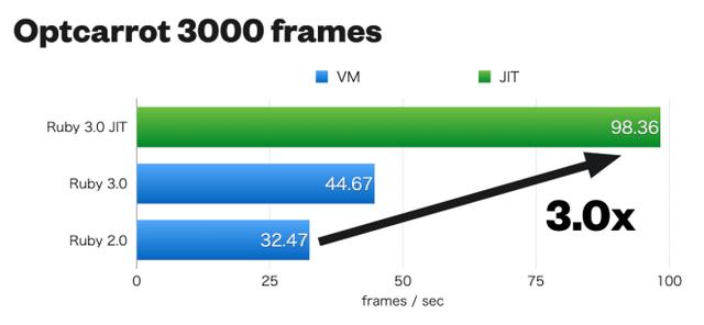 Com o benchmark Optcarrot, que mede o desempenho de thread único com base na carga de trabalho de emulação de jogos do NES, ele obteve um desempenho 3x mais rápido do que o Ruby 2.0!, diz o anúncio oficial.