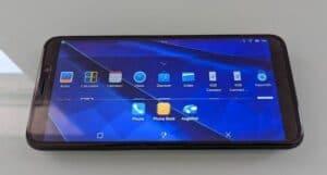 Além da interface de usuário otimizada para celular, esta versão específica vem com um conjunto de aplicativos pré-instalados, incluindo um navegador da web, calculadora, calendário, gerenciador de arquivos, aplicativos de bate-papo, reprodutor de música, aplicativo de clima e, claro, um terminal.