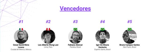 Os 5 vencedores da Maratona resolveram o desafio com mais precisão no menor tempo e receberam o título de Top Master Developers da América Latina.
